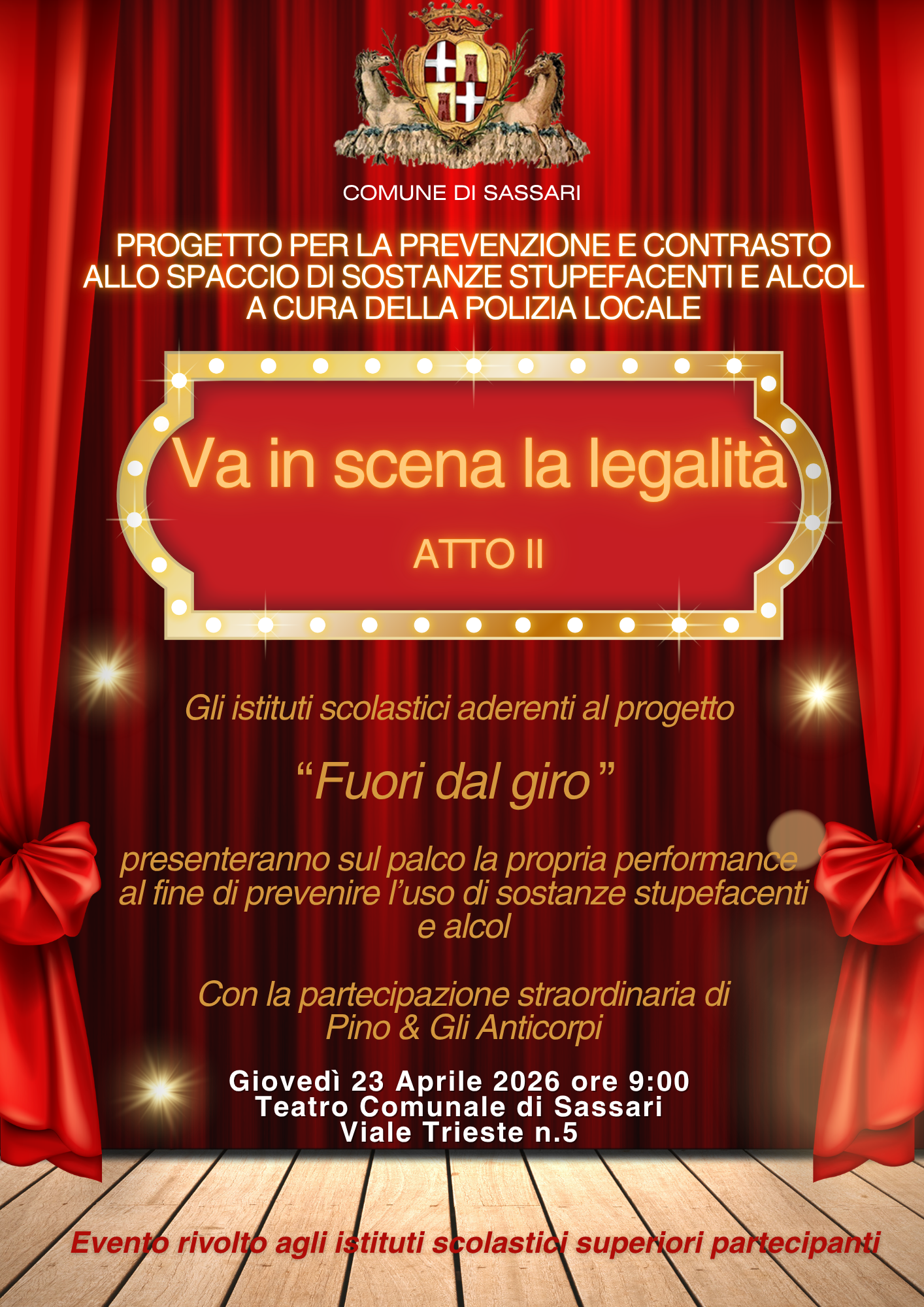 Momento centrale del progetto sarà proprio il convegno di giovedì 23 aprile, durante il quale i partecipanti del percorso saranno i protagonisti attraverso performance artistiche e creative liberamente ispirate ai temi della campagna. Un’occasione di confronto e riflessione, ma anche di espressione, che vedrà i ragazzi impegnati nel tradurre in linguaggio artistico i contenuti appresi durante il percorso. In apertura, dopo i saluti istituzionali del sindaco Giuseppe Mascia, il comandante Gianni Serra presenterà i risultati di un questionario sul tema che è stato diffuso nelle scuole durante il percorso.