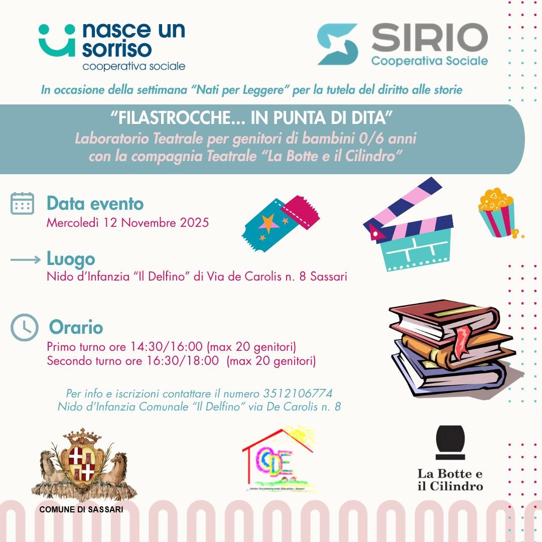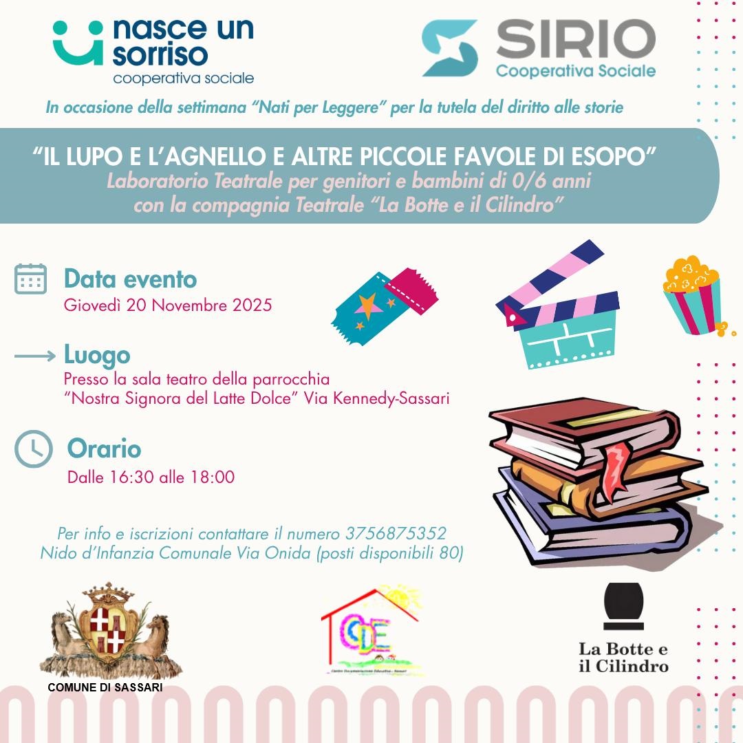 Ogni anno, in occasione della giornata internazionale dei Diritti dell'Infanzia e dell'Adolescenza, il 20 novembre, la settimana nazionale Nati per Leggere promuove il diritto delle bambine e dei bambini alle storie, il diritto a essere protetto non solo dalla malattia e dalla violenza, ma anche dalla mancanza di adeguate occasioni di sviluppo affettivo e cognitivo e le storie sono un mezzo privilegiato di relazione e una fonte inesauribile di stimoli. Il Comune di Sassari aderisce ancora una volta all’iniziativa con due momenti di letture e condivisione, il 12 e il 20 novembre, destinati a bambini in età 0-6 anni e famiglie, a cura della compagnia teatrale "La botte e il cilindro", in collaborazione con le cooperative Nasce un sorriso e Sirio, che gestiscono in appalto i nidi d'infanzia comunali di via De Carolis e via Onida. Per partecipare occorre iscriversi fin da subito contattando direttamente i nidi comunali di via De Carolis (3512106774 per l'evento del 12 novembre) e via Onida (375.6875352 per l'evento del 20 novembre).