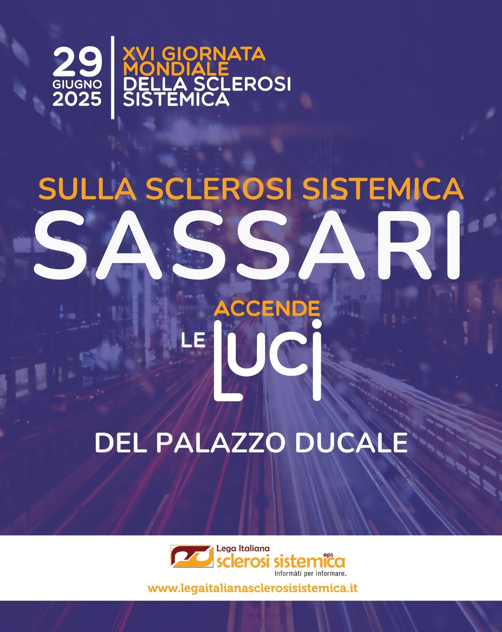 Il 29 giugno si celebra la XVI Giornata mondiale della Sclerosi Sistemica (World Scleroderma Day). Il sindaco Giuseppe Mascia ha accolto la richiesta della Lega Italiana Sclerosi Sistemica e la notte tra il 29 e il 30 giugno Palazzo Ducale si illuminerà di viola a simbolica vicinanza delle persone affette da questa malattia rara e dei loro familiari.